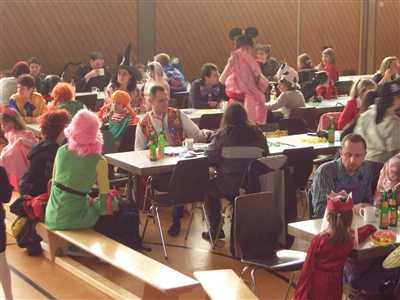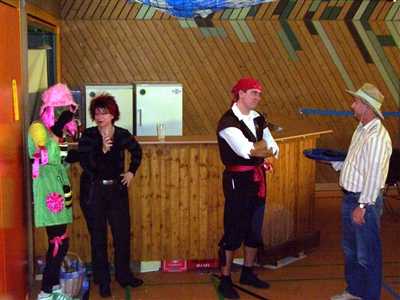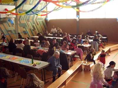 Am Nachmittag hatten die kleinen "Narren und Närrinnen" die Halle fest in ihrer Hand. Piraten, Vampire, Polizisten, Pippi Langstrumpf, Prinzessin, Indianer, Cowboy, Ritter, Bauarbeiter, Hexe, Clown, kleiner Elefant und noch viele mehr, tanzten durch die Halle oder beteiligten sich an den Spielen, welche von einigen Übungsleitern und Trainer angekündigt wurden. Man konnte zum Beispiel beim Muschelspiel mitmachen, oder sich an einer etwas anderen Reise nach Jerusalem beteiligen. Es gab dann noch die heiße Kartoffel, das Luftballonspiel und noch einiges mehr. Natürlich gab es wieder leckere Kuchen, Amerikaner und Muffins, die unsere Kuchenbäckerinnen extra für diesen Nachmittag gebacken haben. Dafür herzlichen Dank. Vielen Dank auch and die Übungsleiter und Trainer für die vorbereiteten Spiele und die Helfer hinter und vor der Theke und beim Auf- und Umbau. Denn... am Abend ging die Party weiter, diesmal mit den größeren "Narren und Närrinnen"!!! (weiter siehe oben)